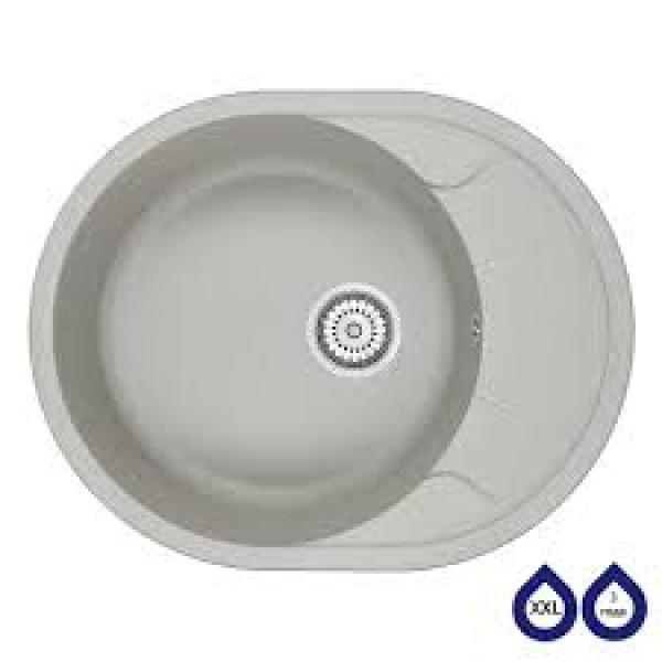 Мойка кухонная гранитная. Тип установки: врезная. Форма: овальная(реверсная). Количество чаш: 1. Наличие крыла: да. Минимальная ширина шкафа: 55 см. Отверстие под смеситель:нет. Комплектация: сифон, выпуск, перелив, сливная арматура, корзинчатый вентиль 3 "½". Габариты мойки (ШхГхВ): 63х50х20 см. Габариты чаши (ШхГхВ): D 45х20 см. Цвет изделия: базальт.¶